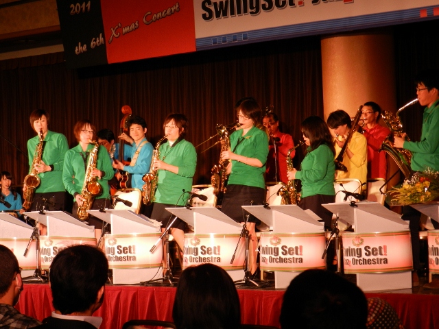 福島の復興をジャズで応援するコンサート「Swing Set!Jazz Orchestra」が10日、郡山市熱海町のホテル華の湯で開かれ、市民ら約400人が軽快なジャズナンバーに酔いしれた。