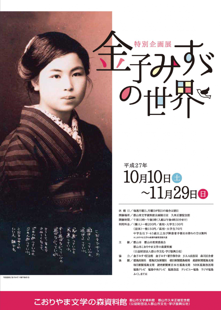 郡山市こおりやま文学の森資料館の特別企画展「金子みすゞの世界」が、10月10日から同市豊田町の文学資料館で開かれる。11月29日まで。