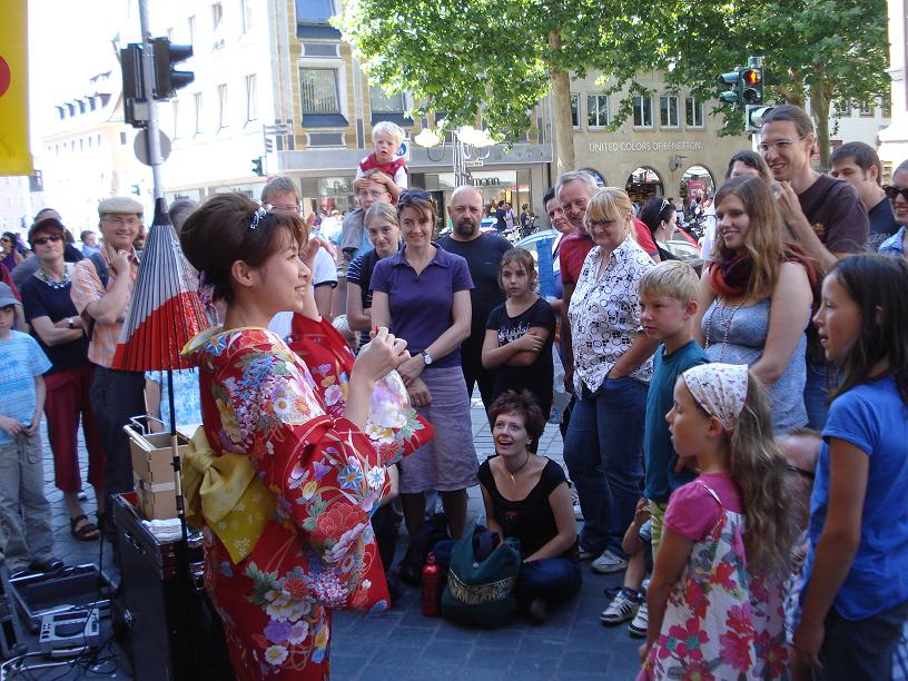 海外公演のドイツでは、つたない英語とドイツ語での飴細工ショーだったが、子どもから大人まで大勢の人から大きな拍手と声援をいただき、感激に浸ることができた。バンベルクの街の人たちは飴細工をアートと考え、日本人の技術は素晴らしいと言ってくれた。バンベルクの街を去る日、別れがつらく、涙したほどだった。